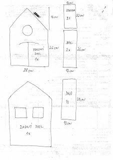 Na domčeky budete potrebovať: kartón, látku, nožnice, šijací stroj, alebo ihlu a niť na ručné šitie, lepidlo Herkules, šikmý pásik, bavlnku